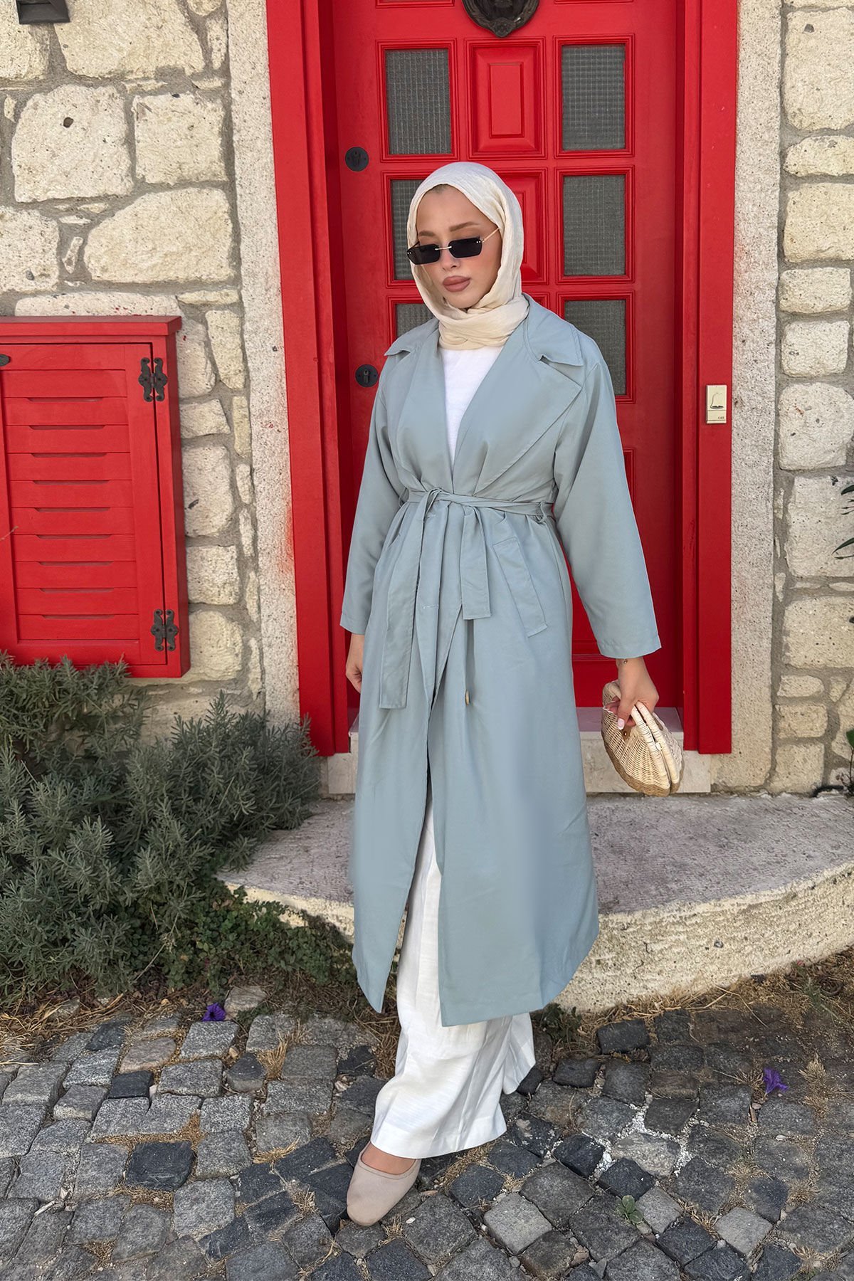 Pelerinli Astarlı Oversize Trençkot 4-6696 - MAVİ