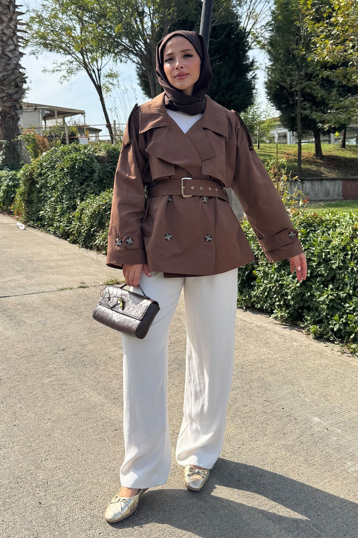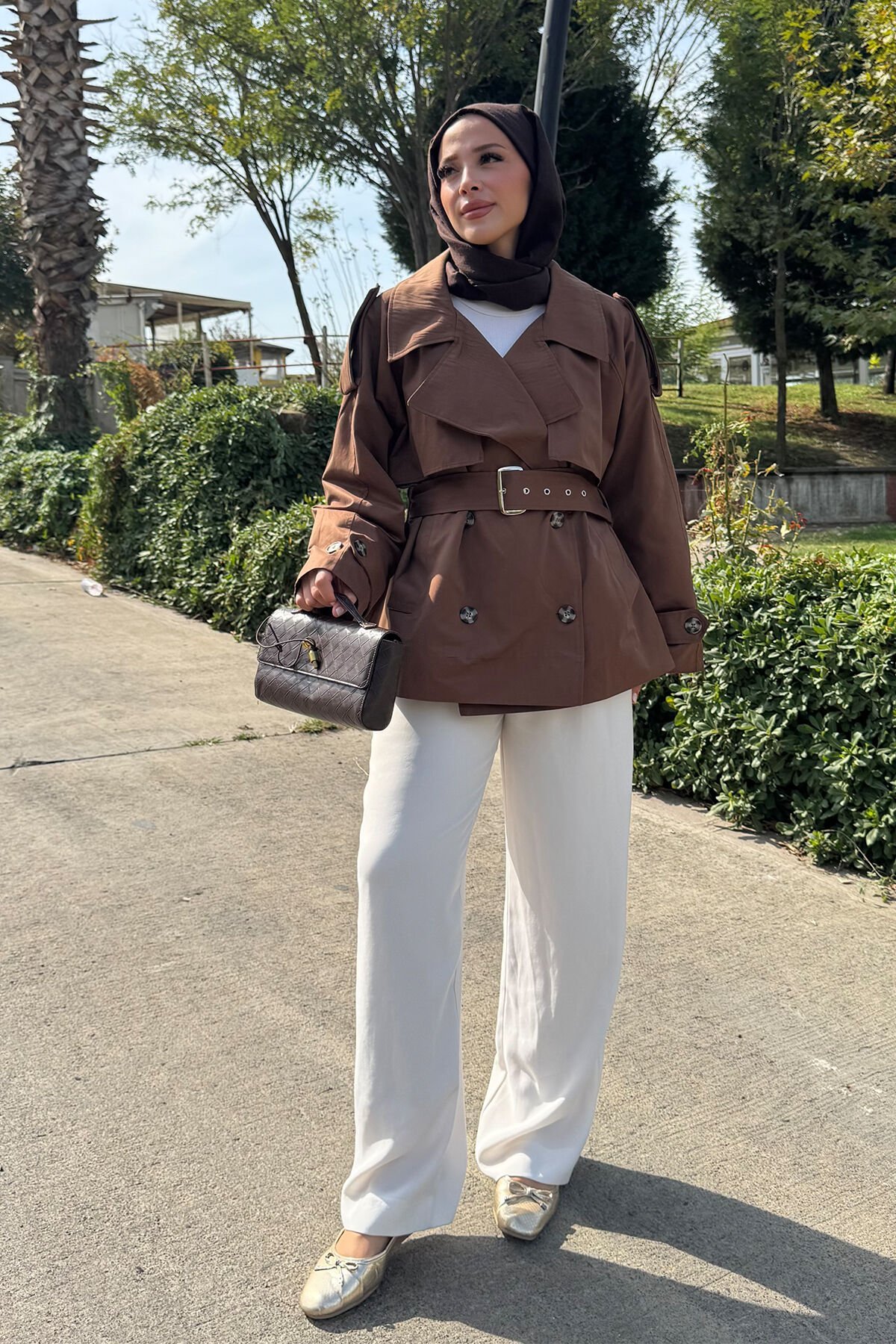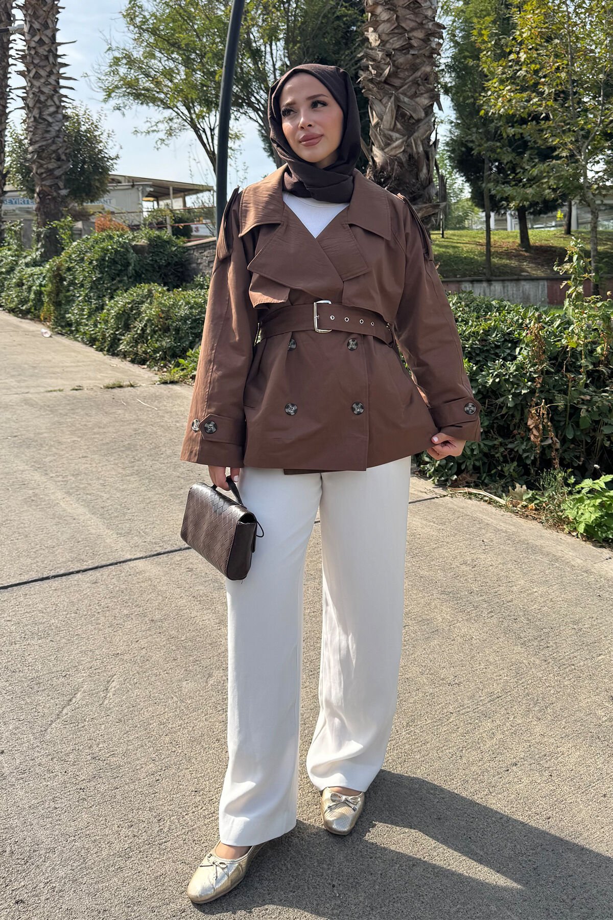 PELERİNLİ ASTARLI TRENÇKOT 31-4010 - TABA