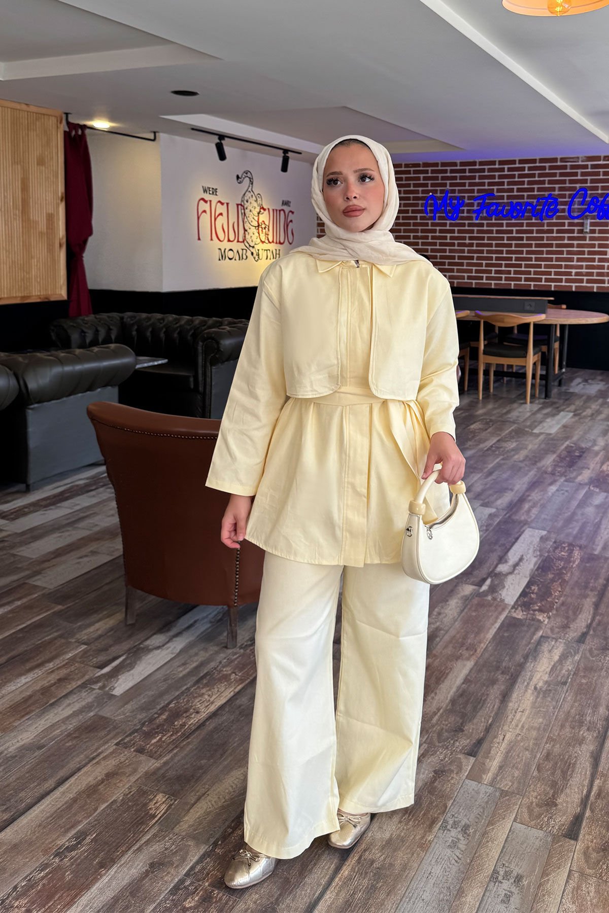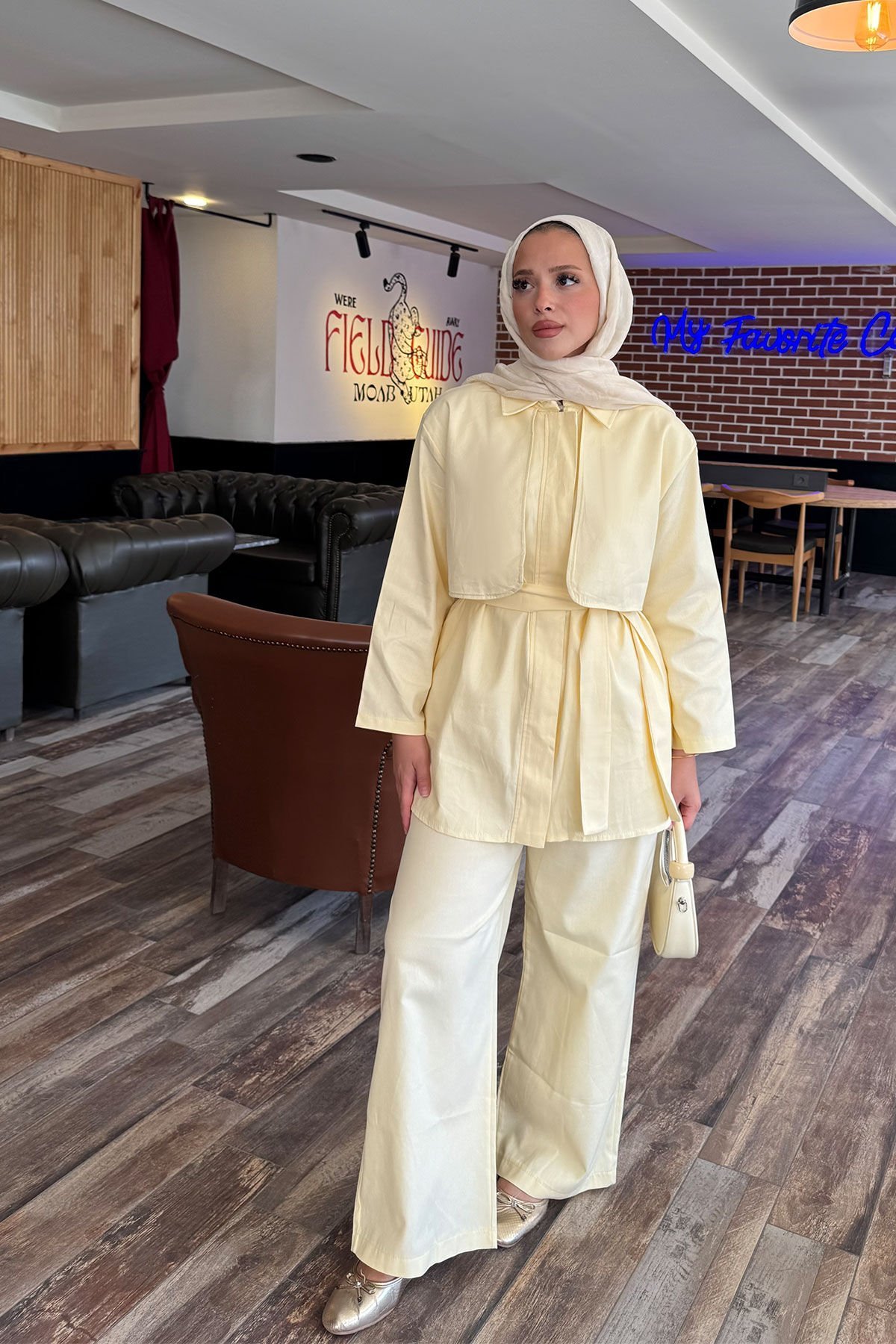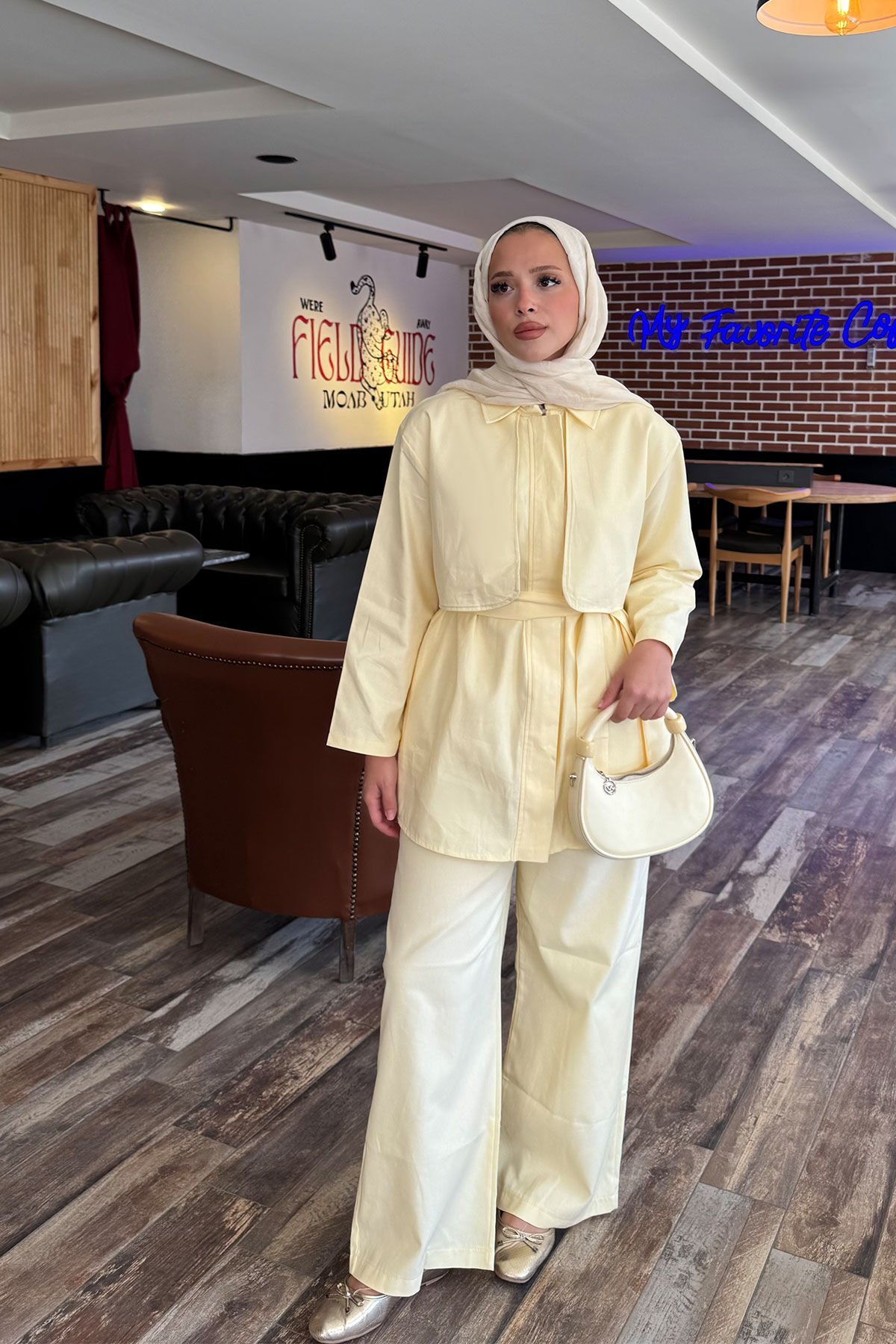 PELERİNLİ GABARDİN TAKIM 9-52812 - SARI