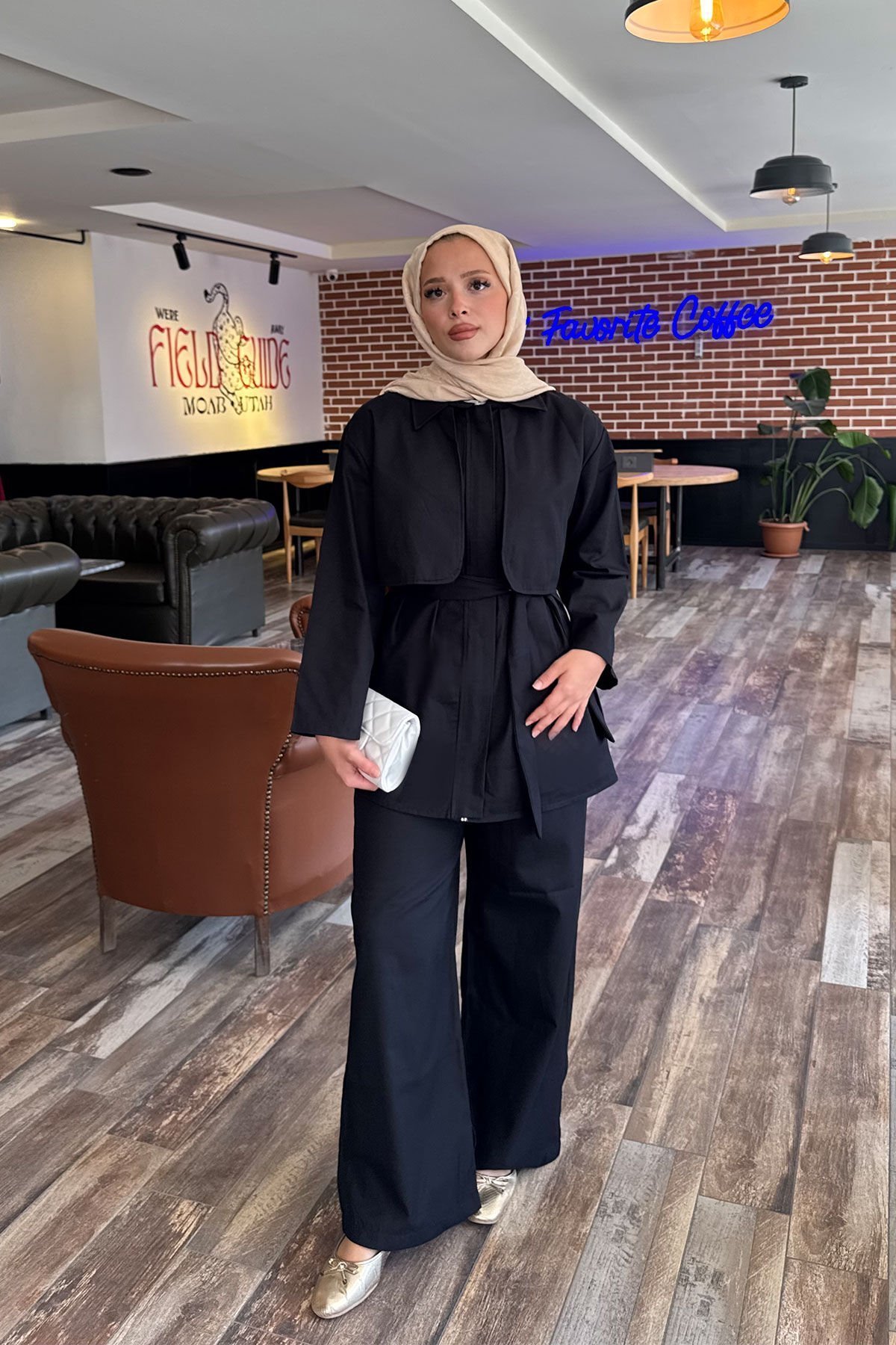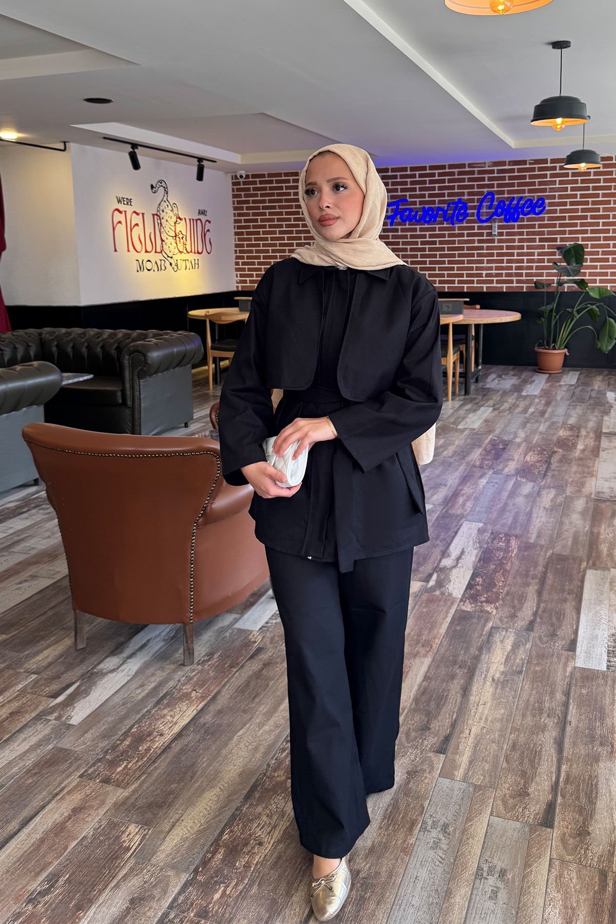 PELERİNLİ GABARDİN TAKIM 9-52812 - SİYAH
