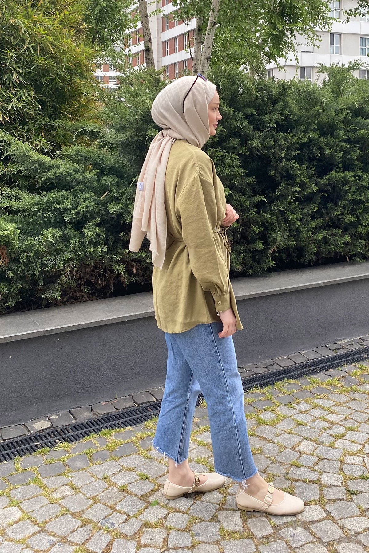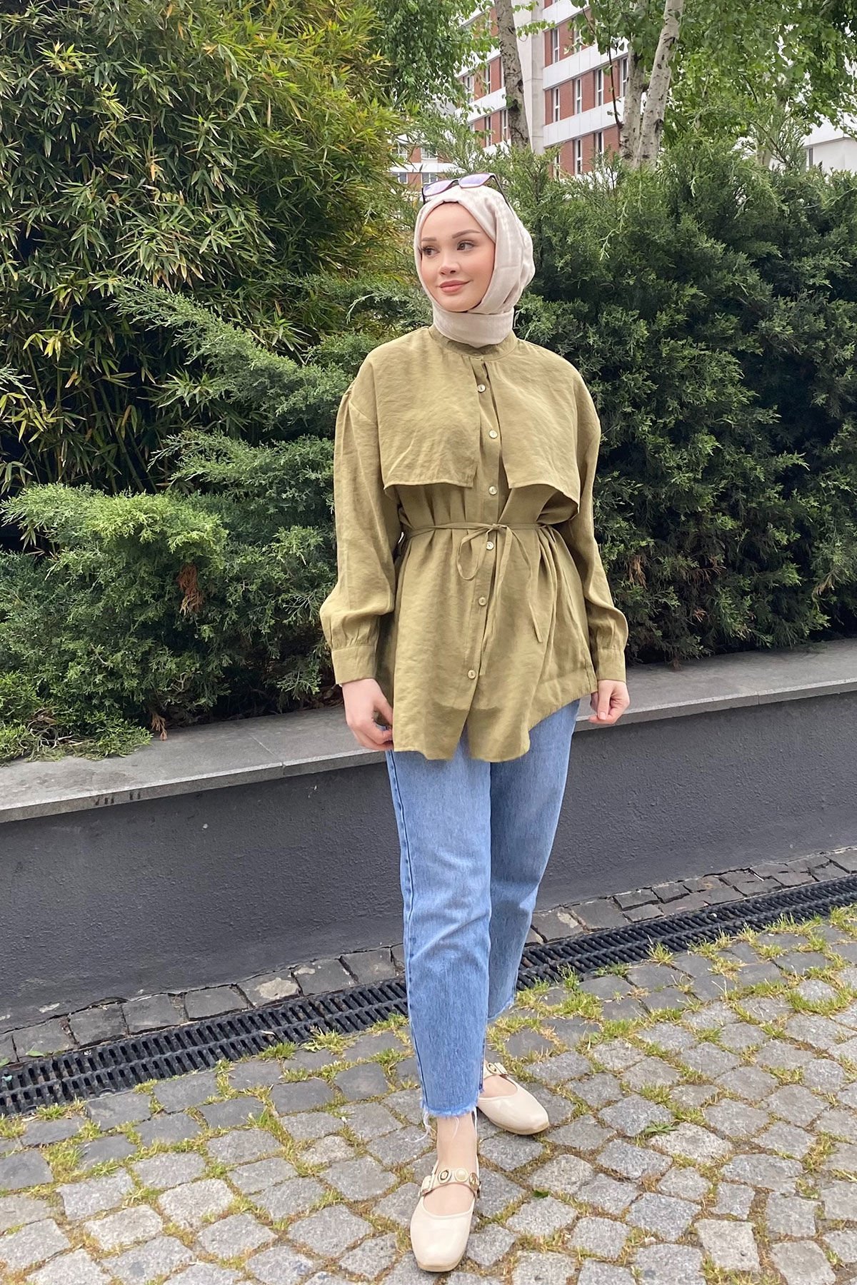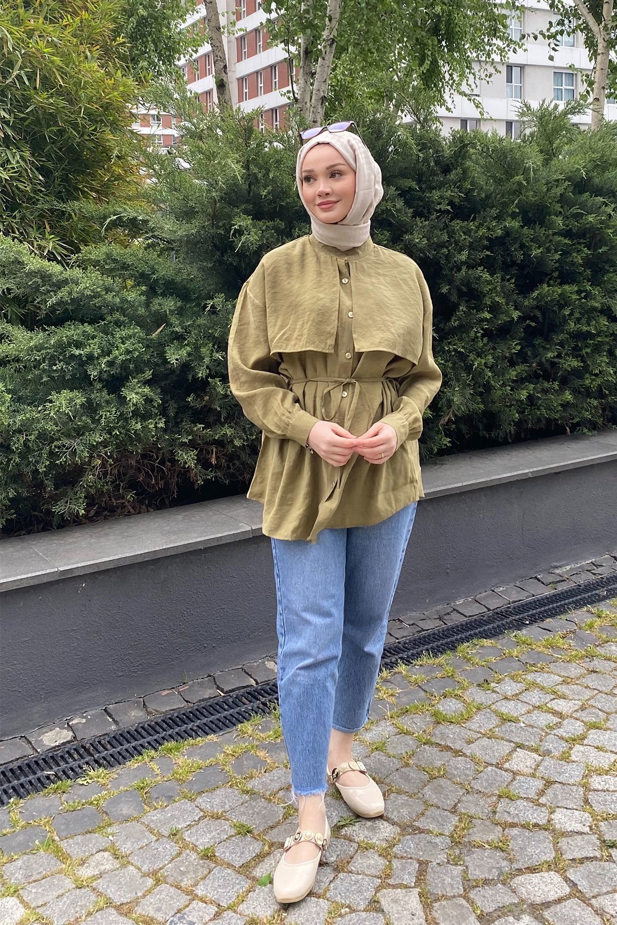PELERİNLİ GÖMLEK 31-2231 - OLİVE