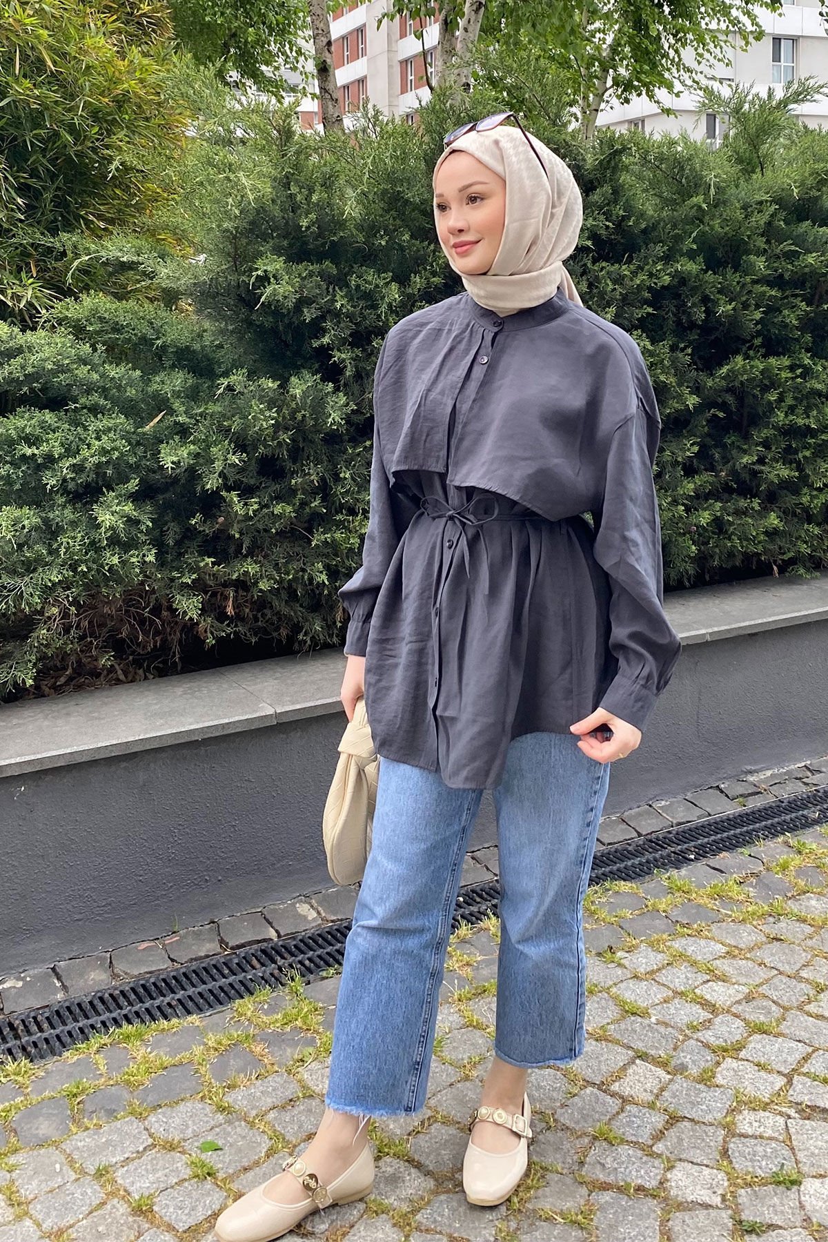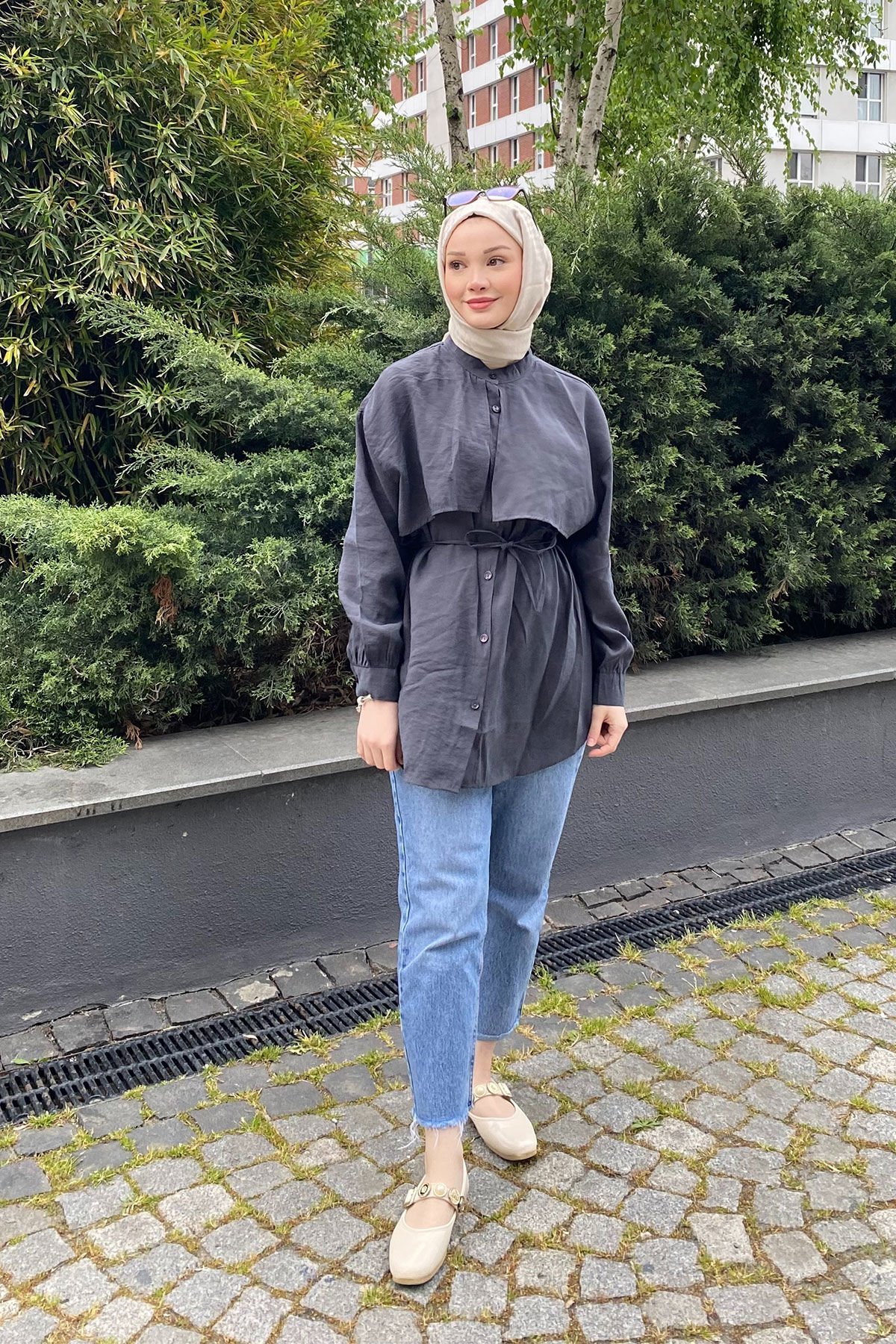 PELERİNLİ GÖMLEK 31-2231 - ANTRAST