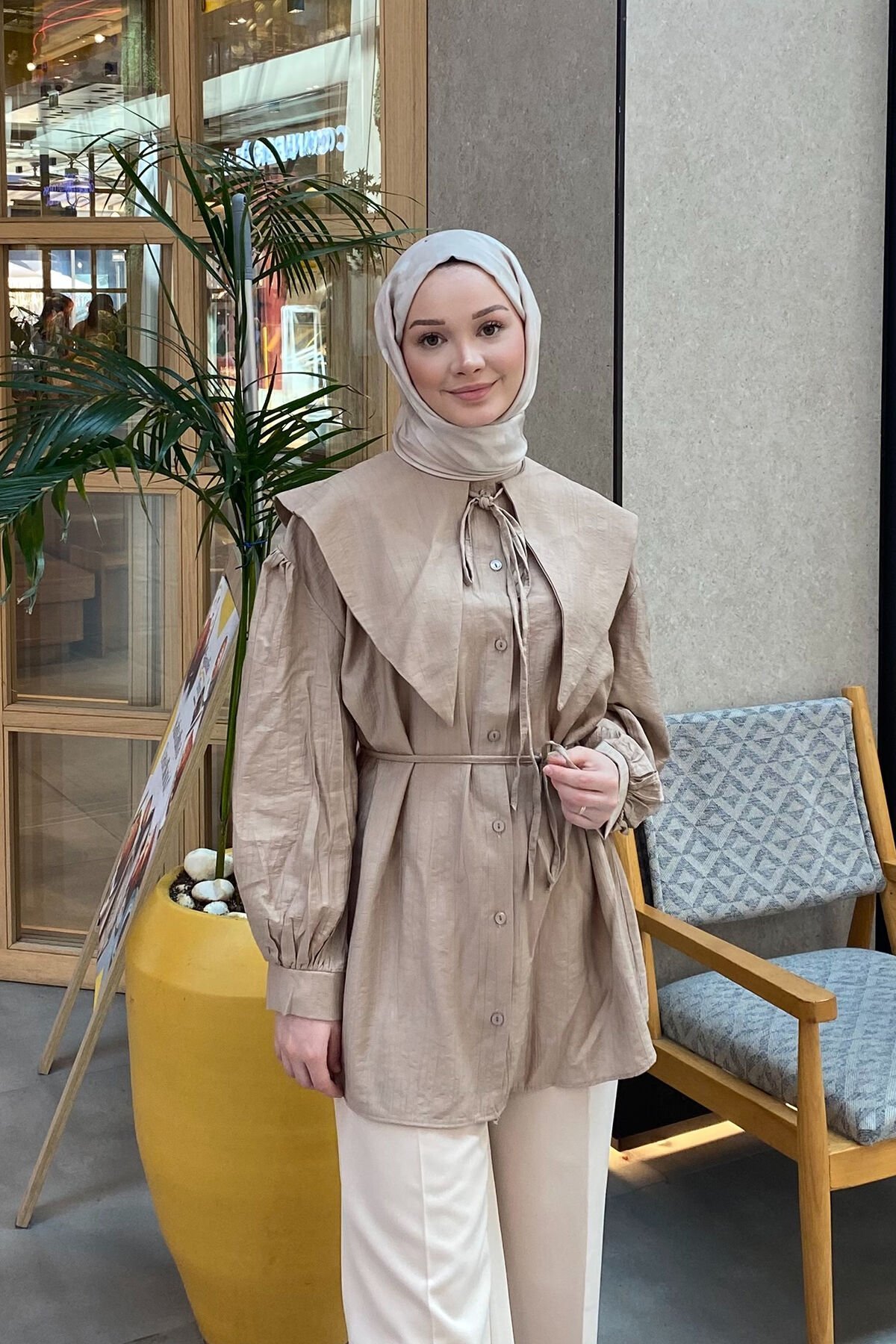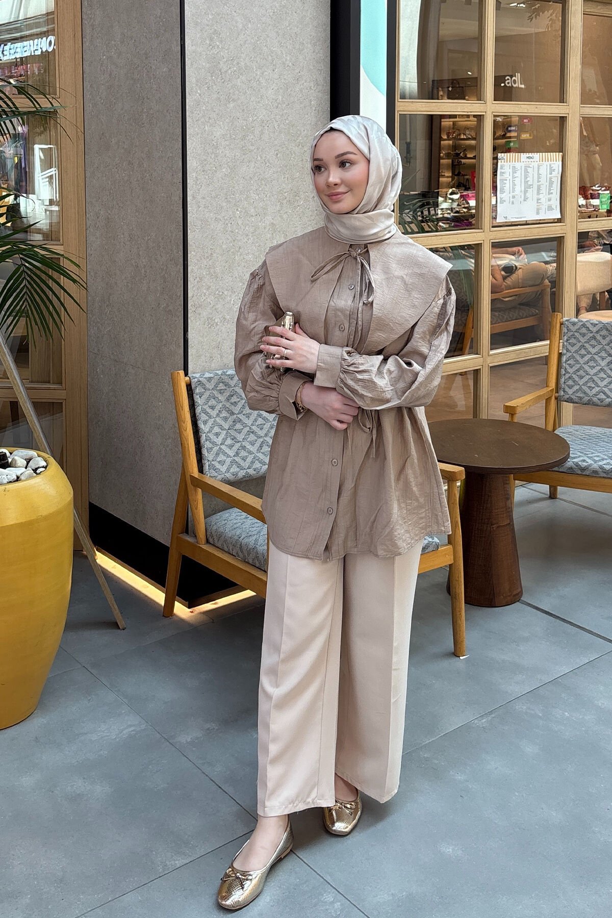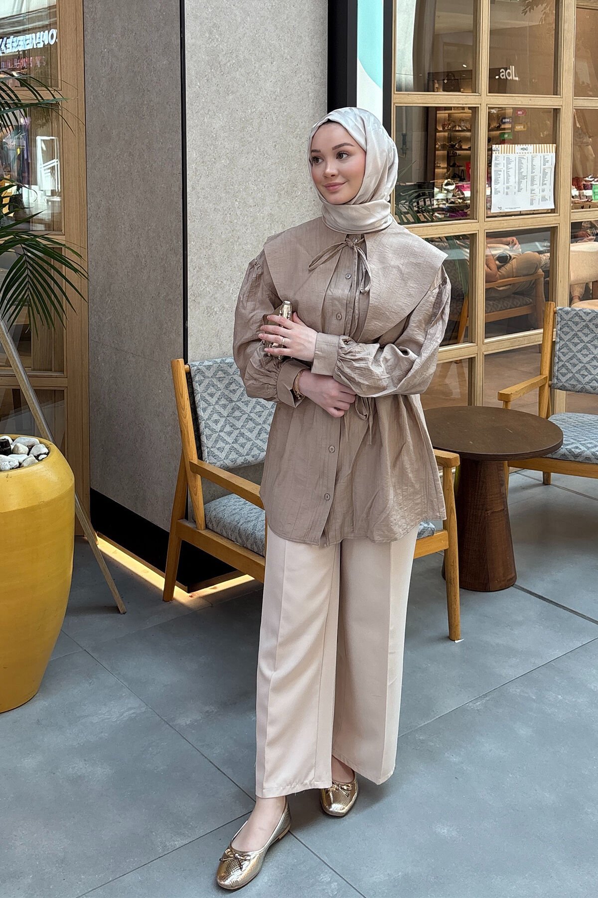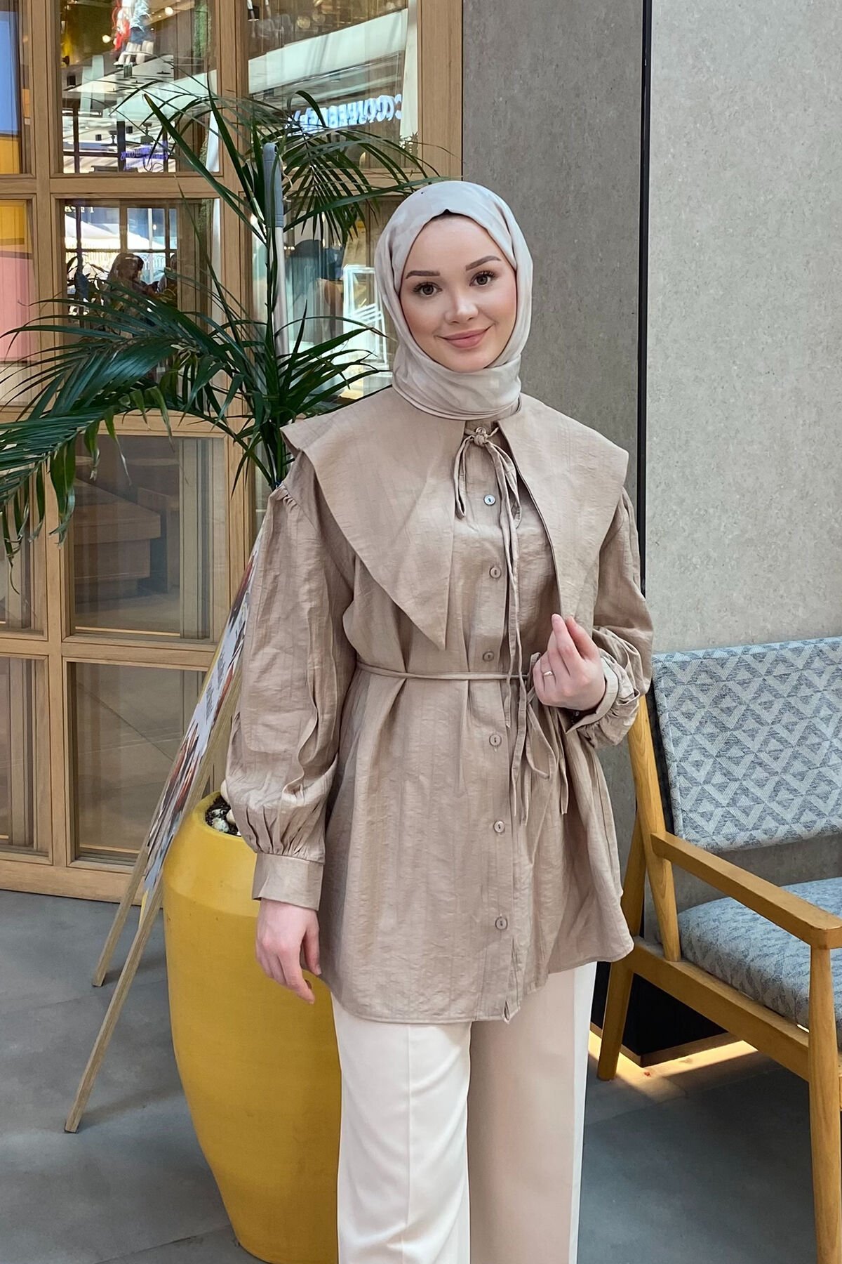 PELERİNLİ MODAL GÖMLEK 31-2253 - VİZON