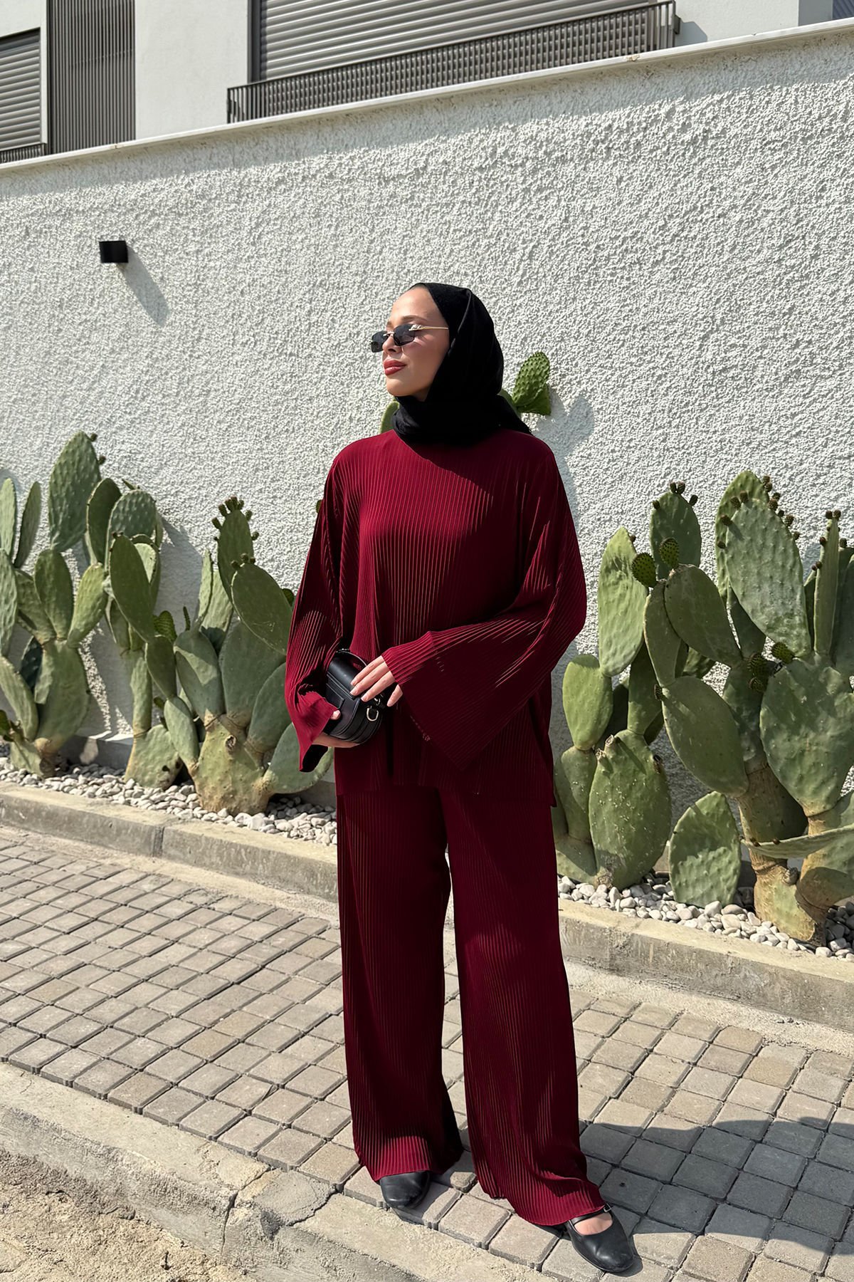 PLİSELİ TAKIM 9-51837 - BORDO