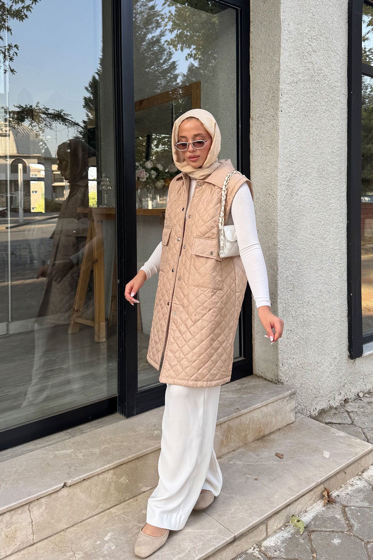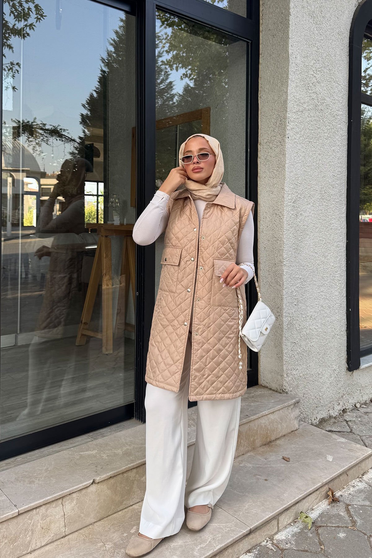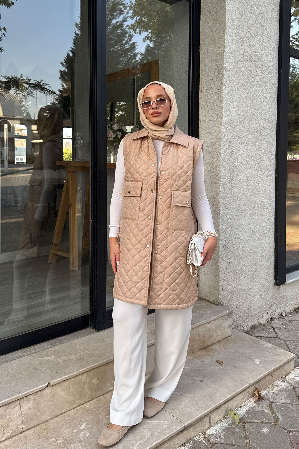 - Classic kesim, önü çıtçıtlı , önden cep, içi astarlı ve ince elyaflı kapitone yelek