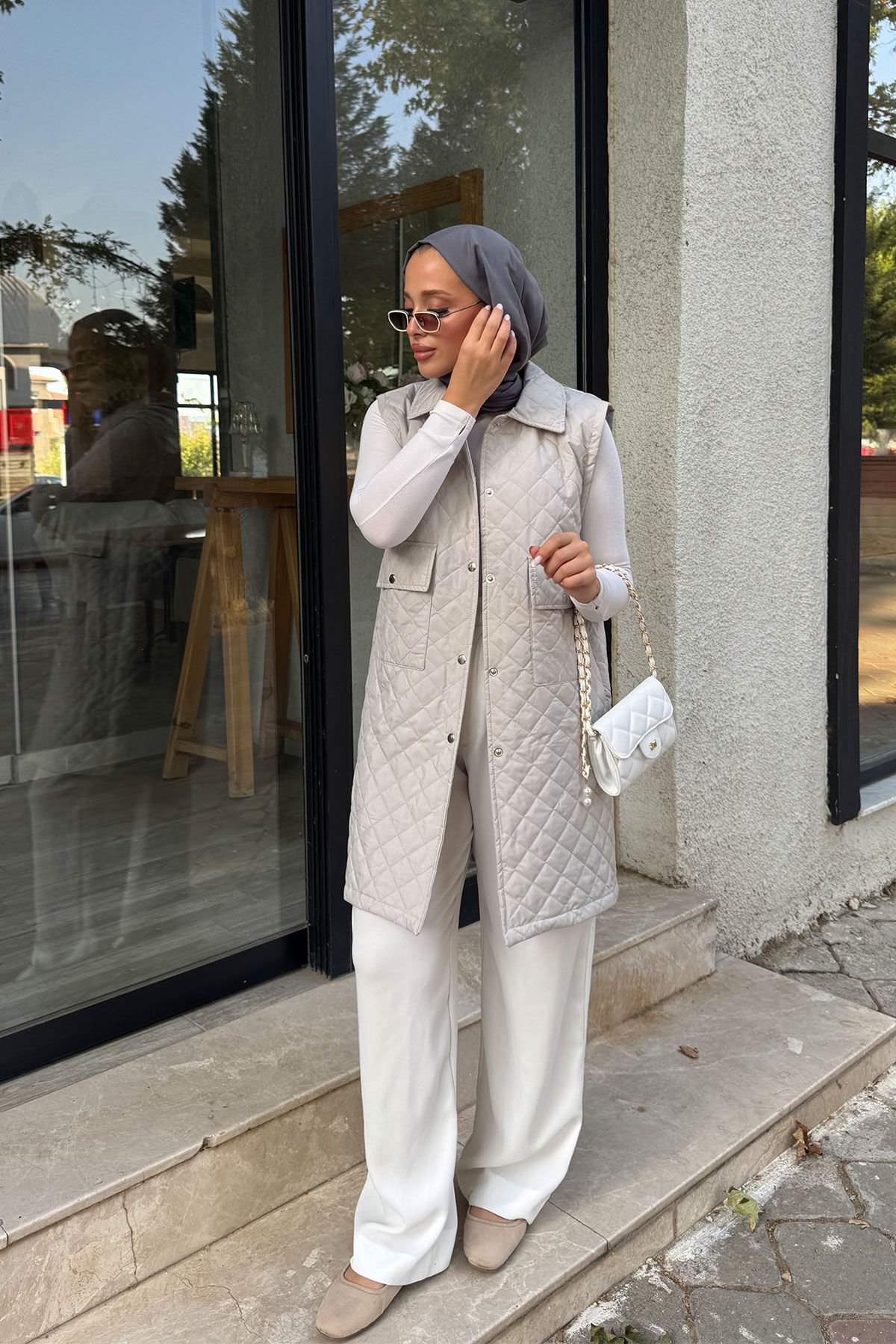 - Classic kesim, önü çıtçıtlı , önden cep, içi astarlı ve ince elyaflı kapitone yelek