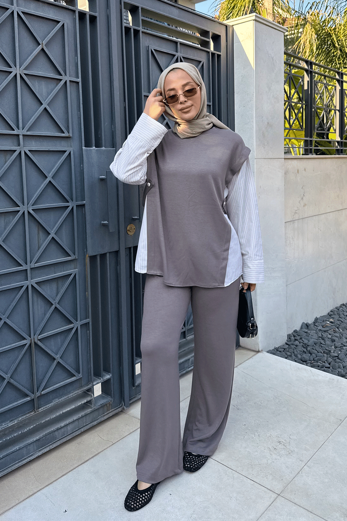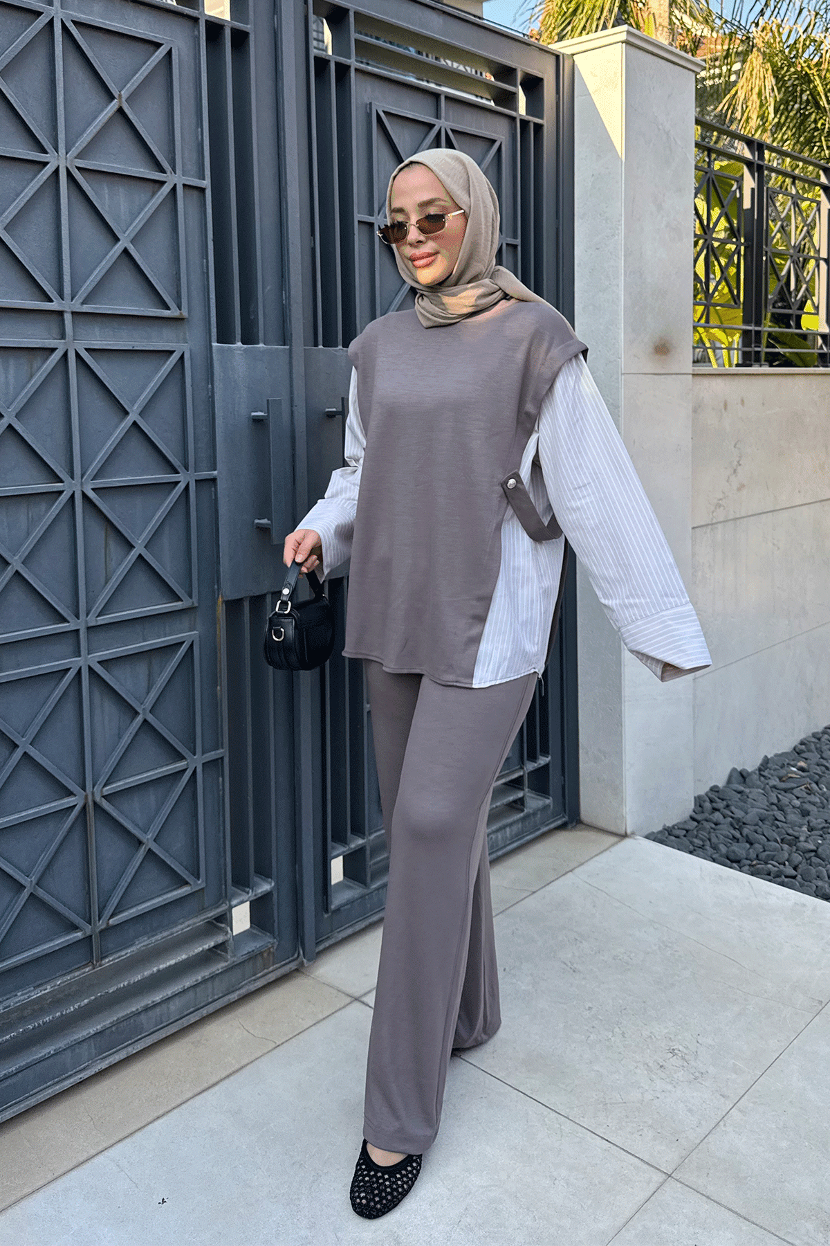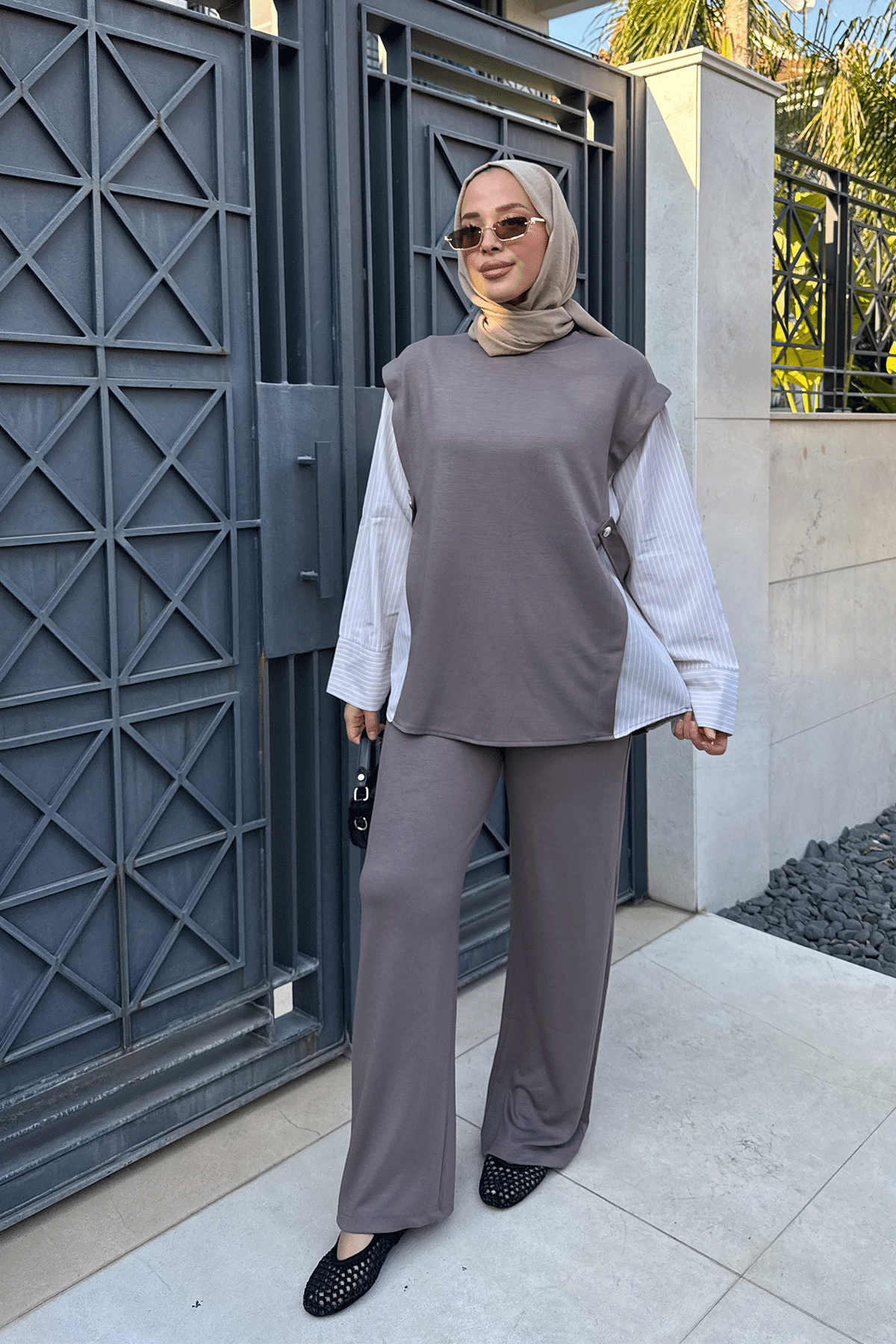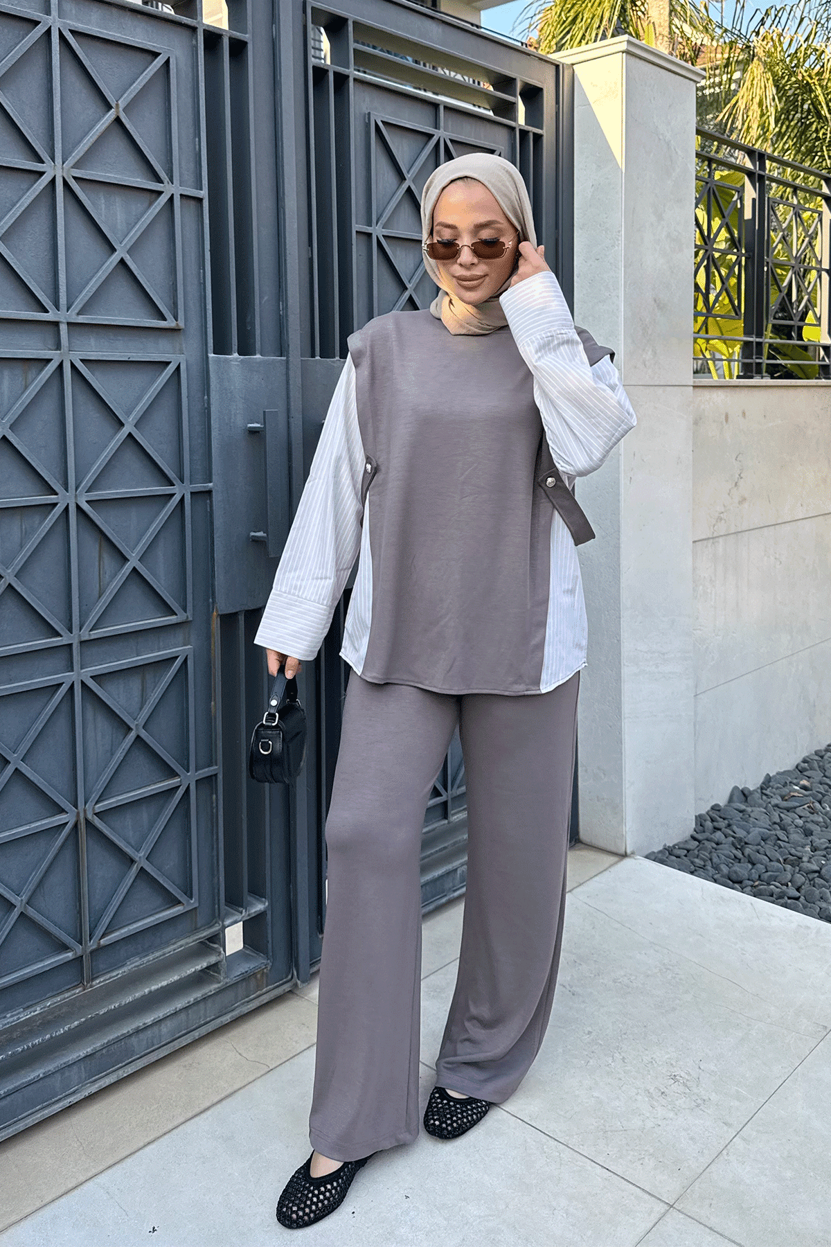 POPLİN DETAYLI OYŞO TAKIM 9-52849 - ANTRAST