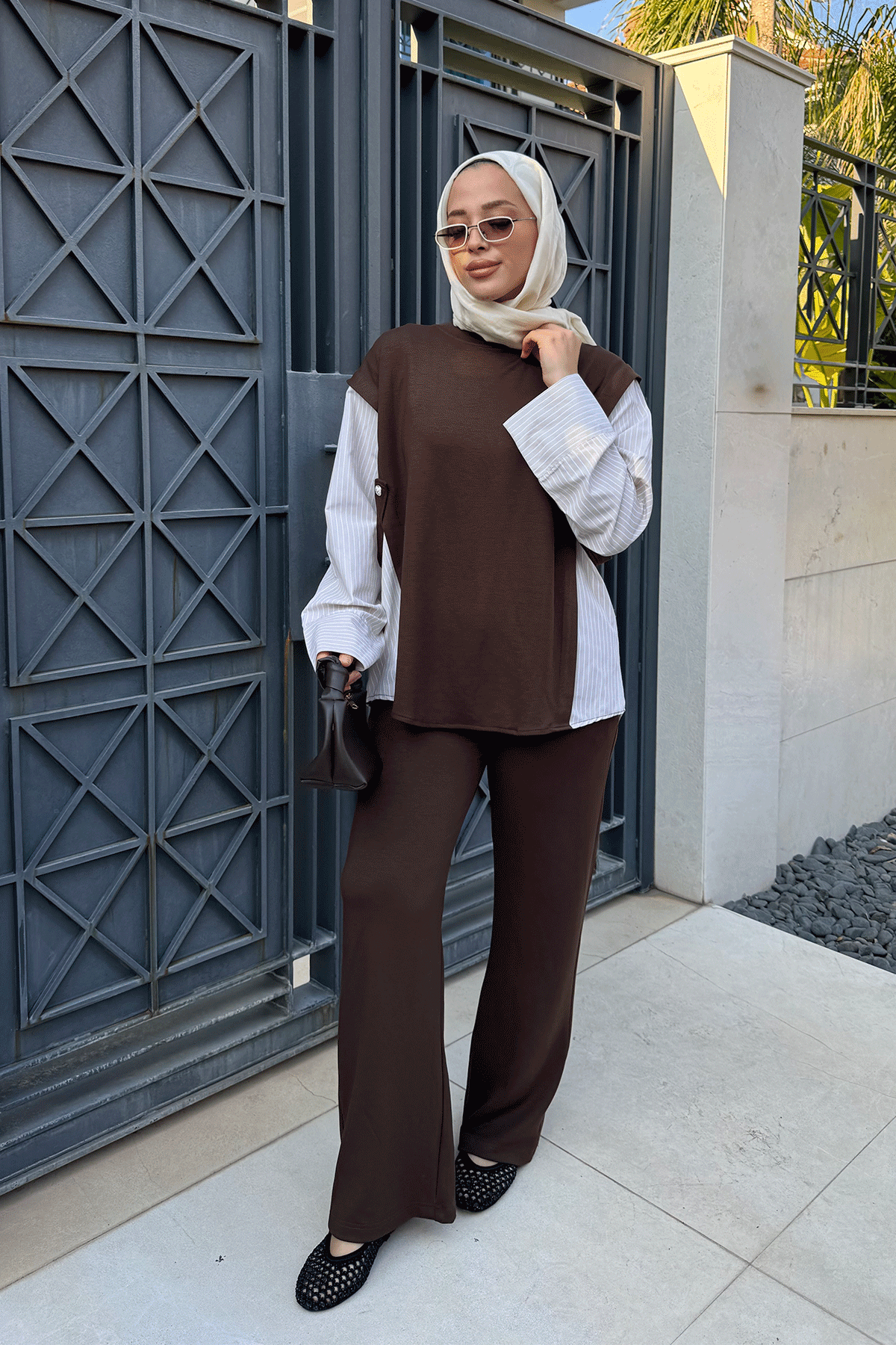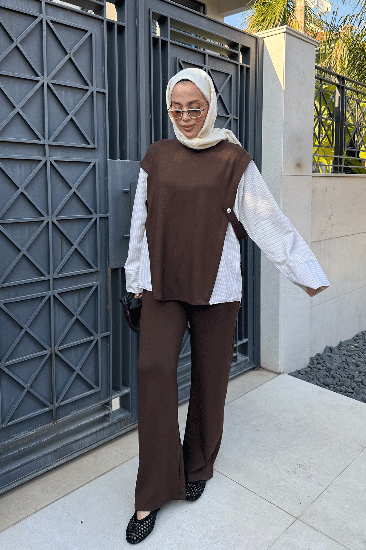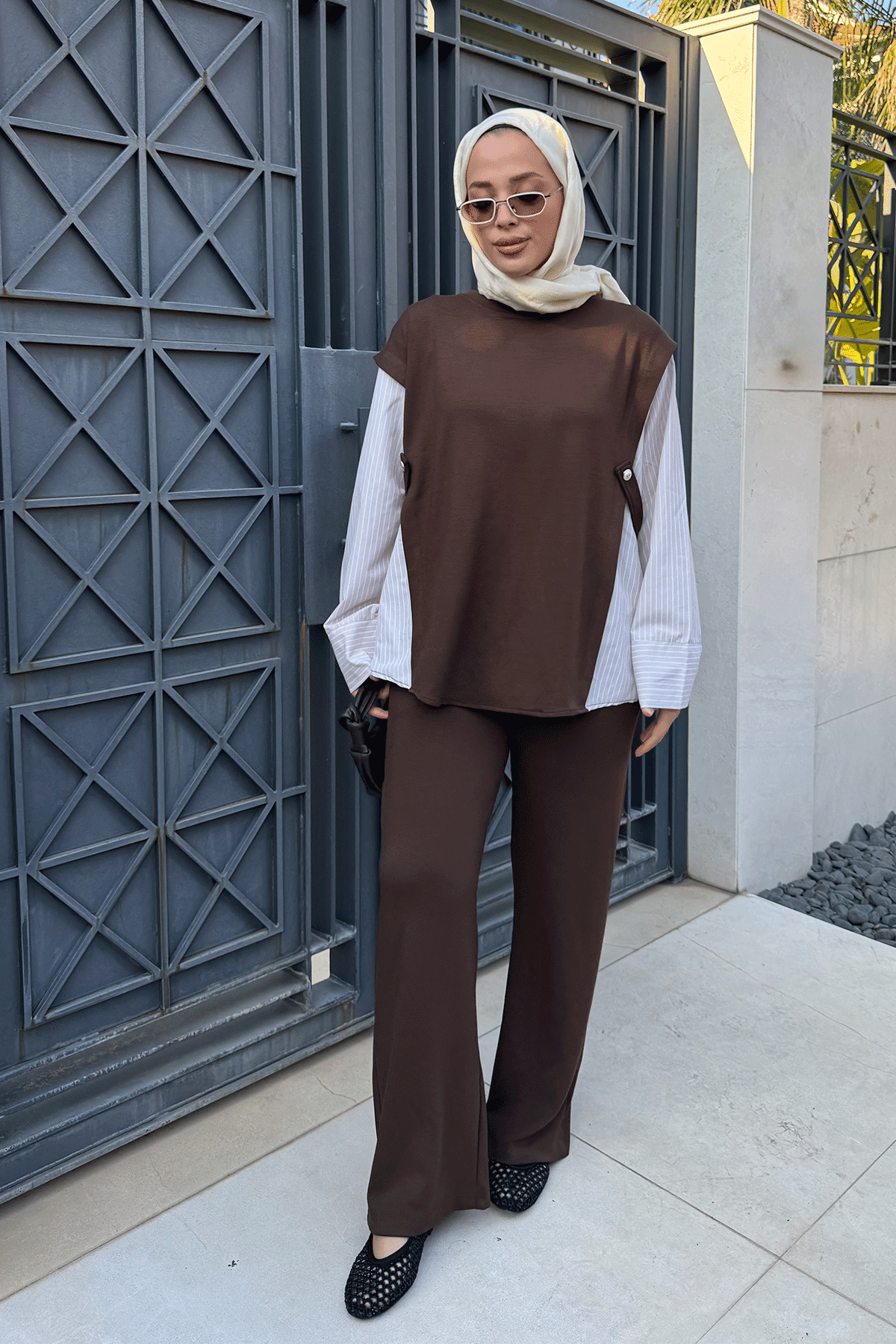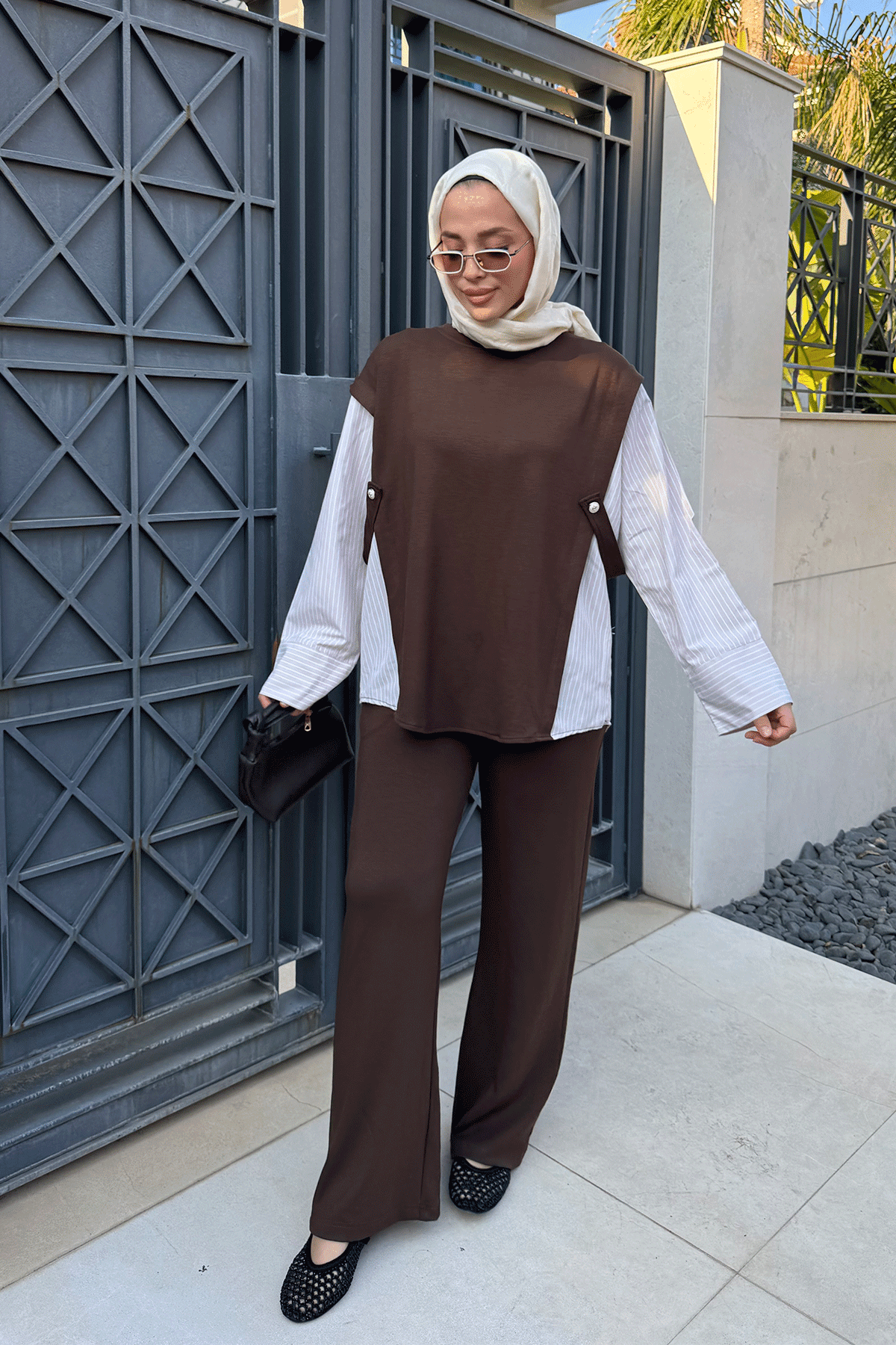 POPLİN DETAYLI OYŞO TAKIM 9-52849 - KAHVERENGİ