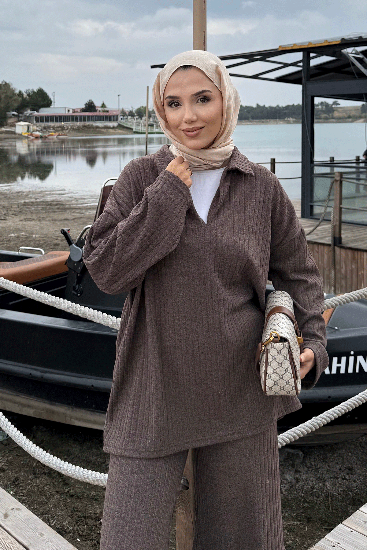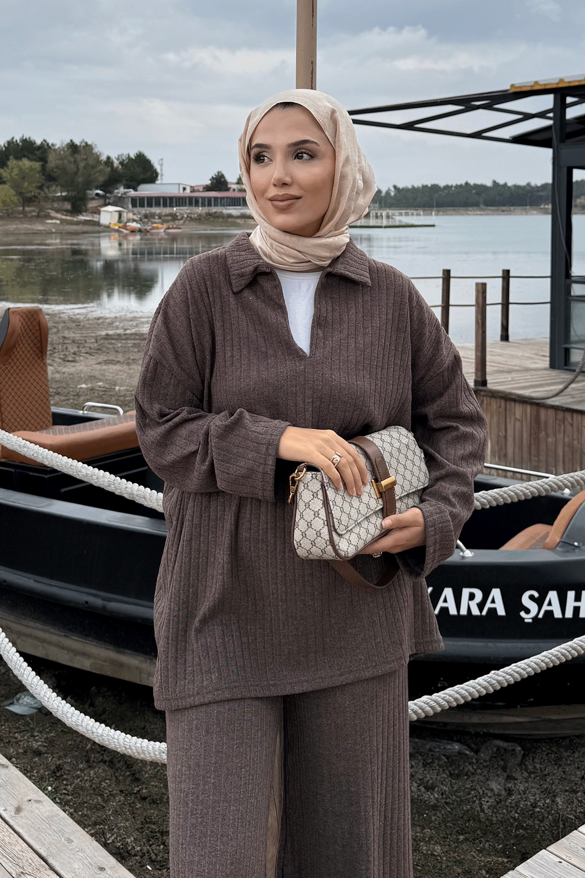 V YAKA TRİKO TAKIM 9-52857 - KAHVERENGİ
