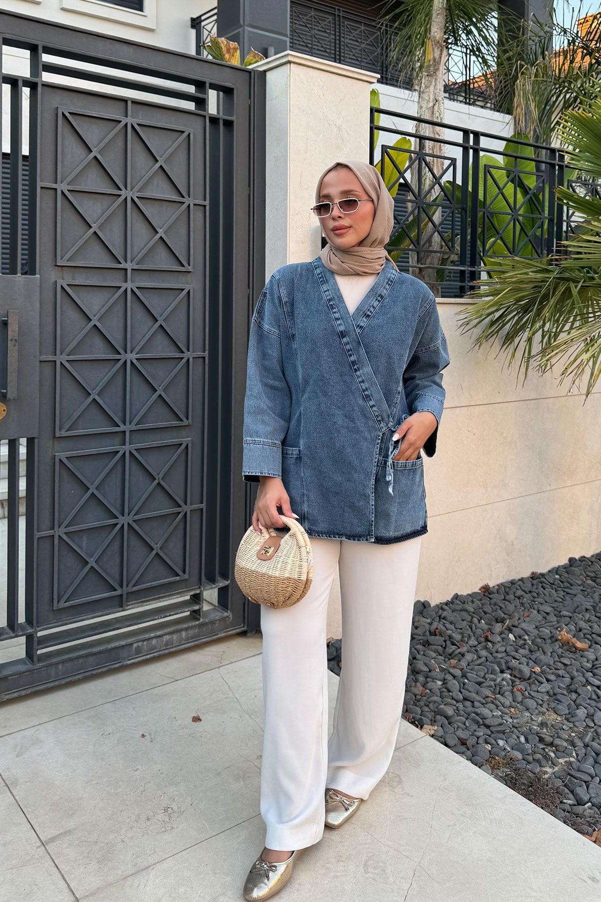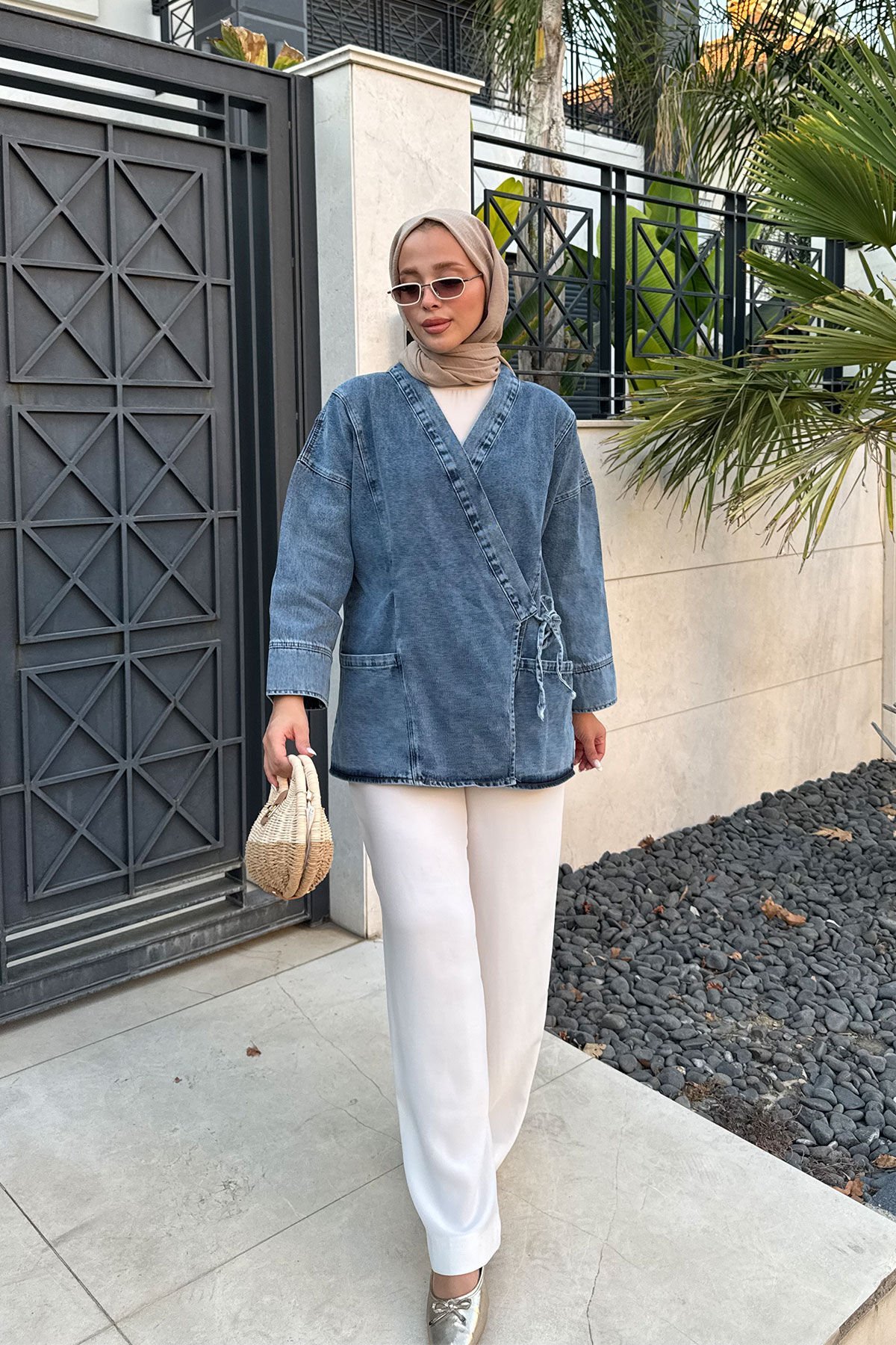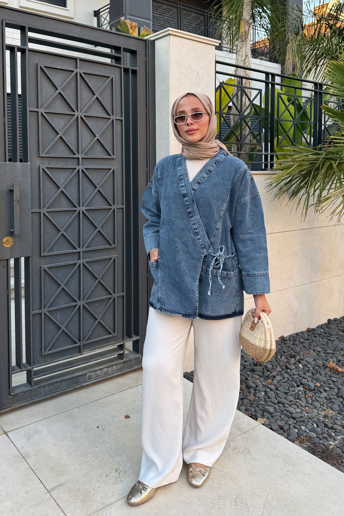 Yandan Baglamalı Kot Ceket 9-52604 -KOT